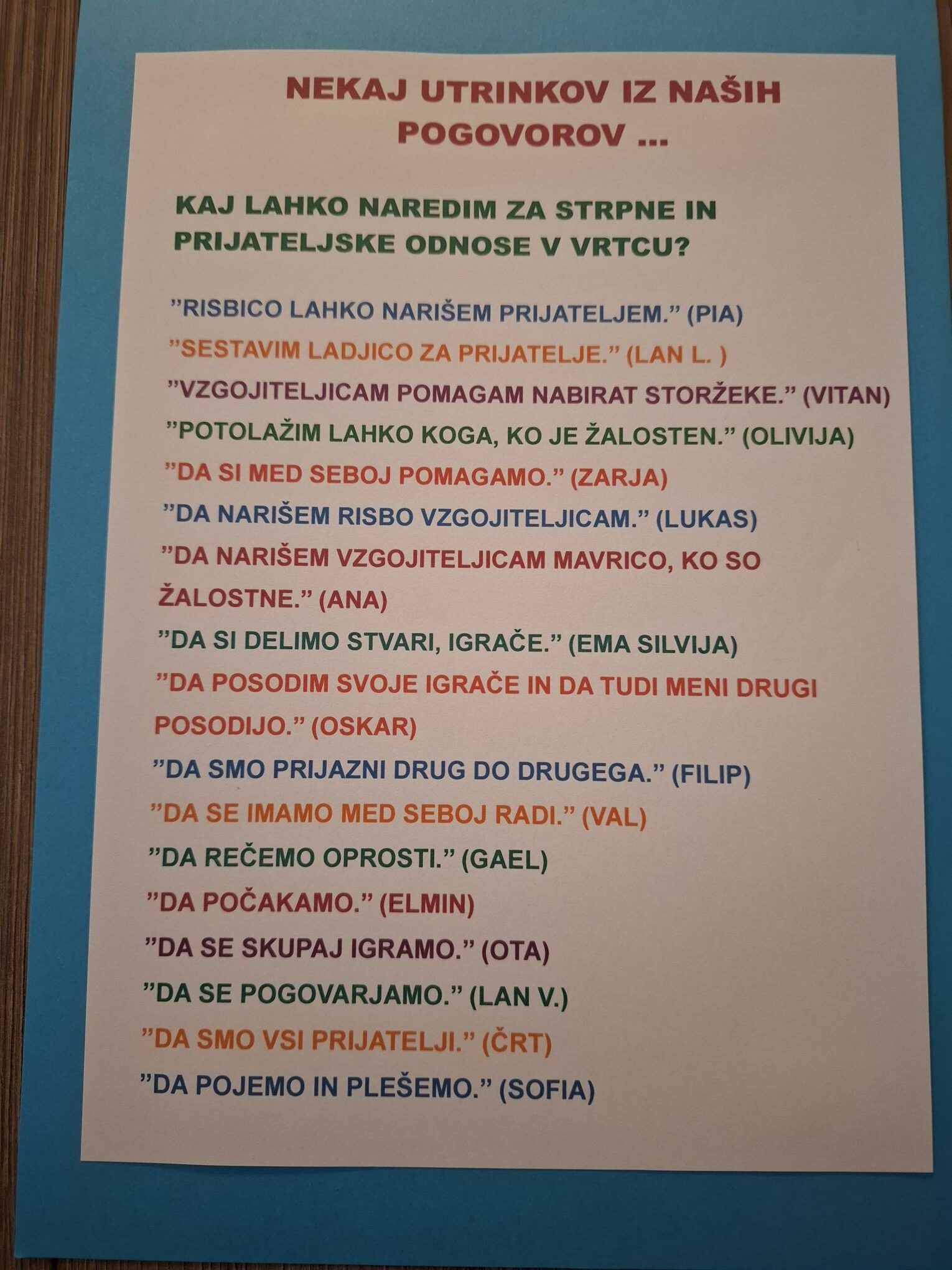 - ozaveščanje otrok o različnih oblikah nestrpnosti, o prepoznavanju nasilja