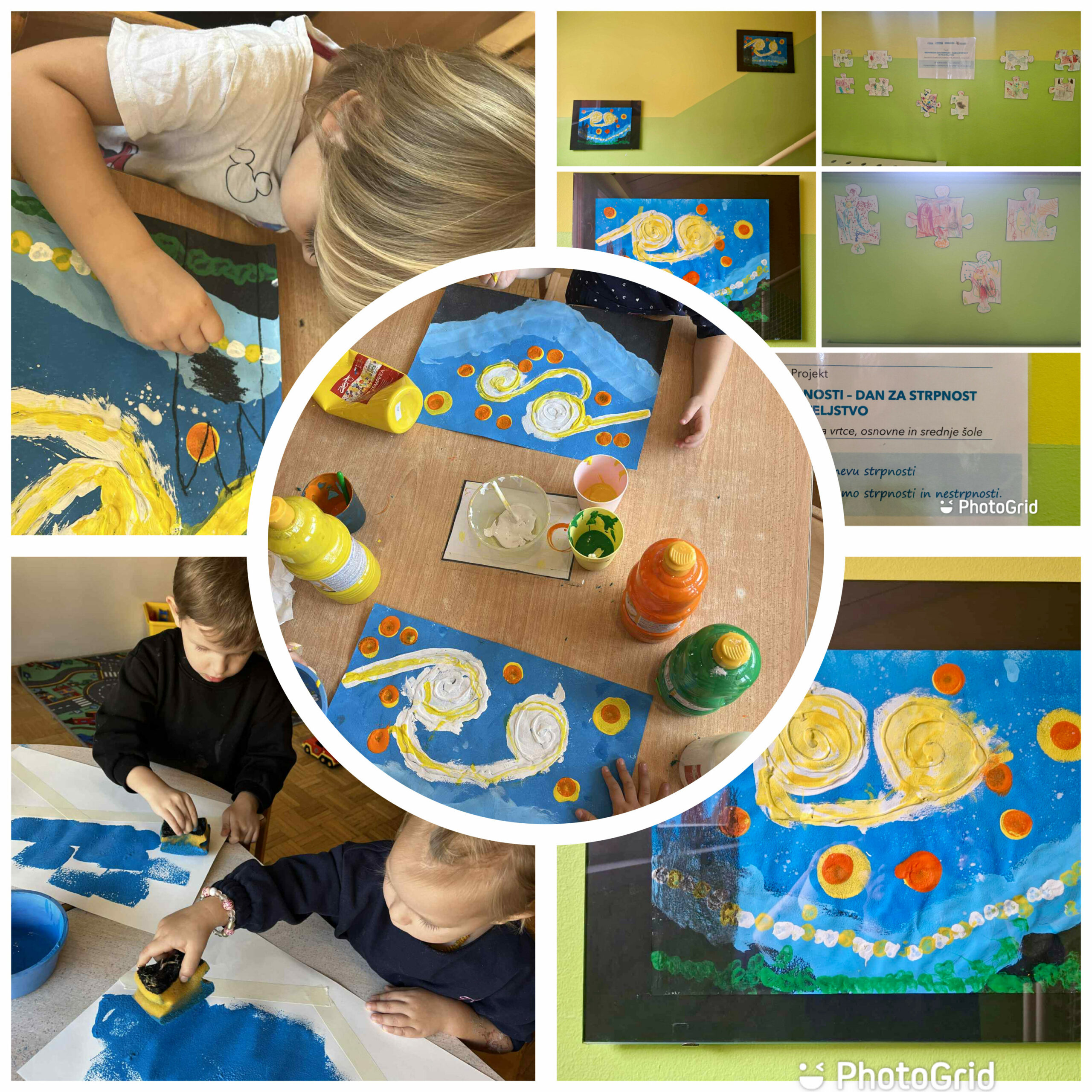 V sklopu izvedbe projekta, se v oddelkih prepletajo raznolike dejavnosti. Vodilo pri izvedbi so smernice nosilcev projekta (Društvo za strpne odnose Eksena in Izobraževalni center Eksena). Dejavnosti se navezujejo na krog prijateljstva ter na zgodbi: Stop (A. Vandaele, STOP. Založba Kres. Ljubljana, 2021) in Zgodbo o dveh kozah (Tom Barber. Zgodba o dveh kozah. Didakta, Radovljica, 2005). Seveda strokovni delavci v načrtovanje in izvedbo dela v oddelkih, vnašajo tudi svoje ideje in gradivo za dodatno podporo pri tovrstnih aktivnostih. Otroci se pod vodstvom mentorjev tudi likovno izražajo. V posameznih enotah so že nastale čudovite likovne razstave, ki si jih lahko ogledajo starši in drugi obiskovalci posameznih enot vrtca. Nekateri izdelki bodo sodelovali tudi na likovnem natečaju, kjer bodo strokovno izbrani izdelki del osrednje nacionalne razstave.