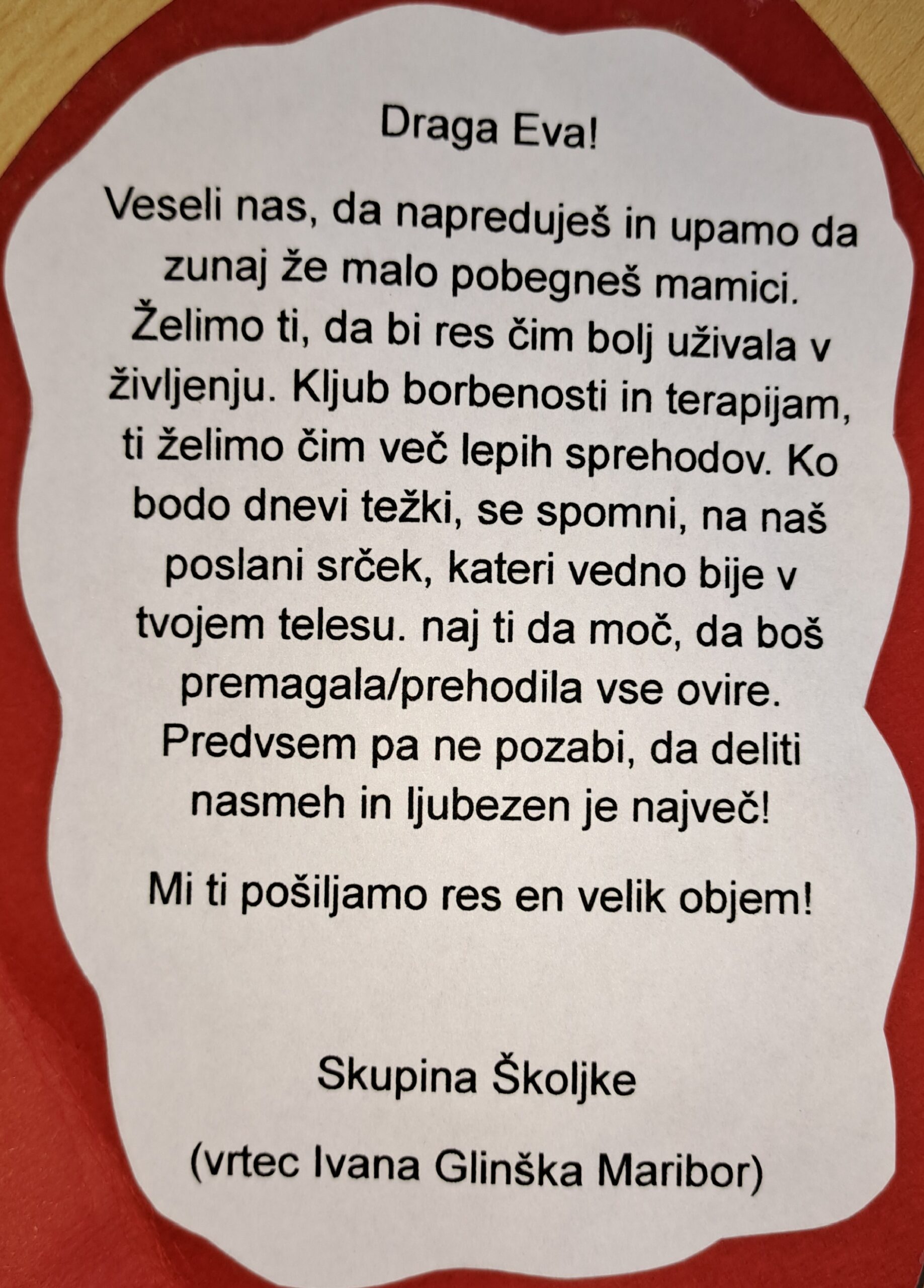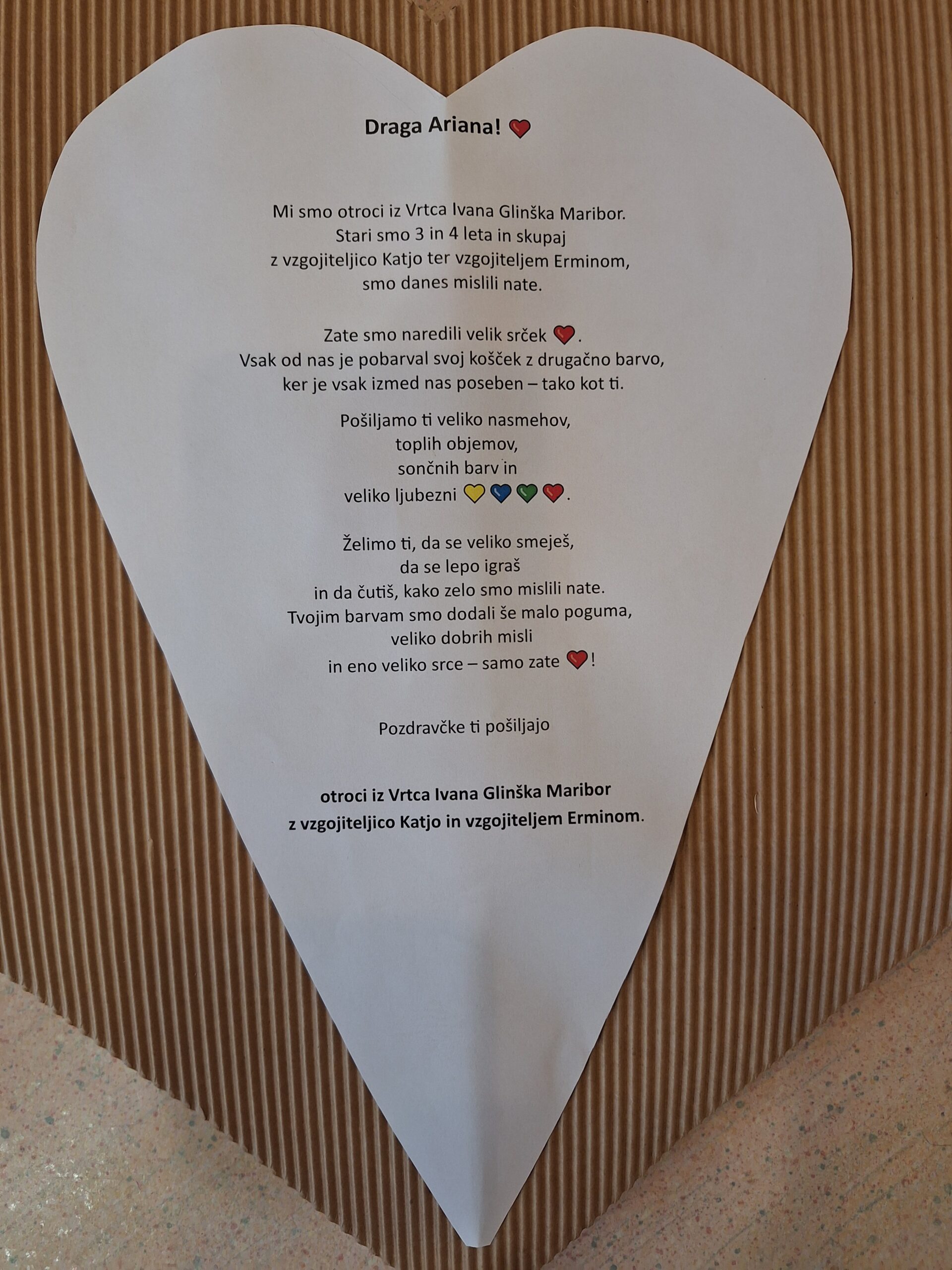 Zaposleni v Vrtcu Ivana Glinška Maribor, si močno želimo, da naša pisma razveselijo vse, ki jih bodo prejeli, vsem družinam in otrokom z redkimi boleznimi, pa želimo vse dobro.